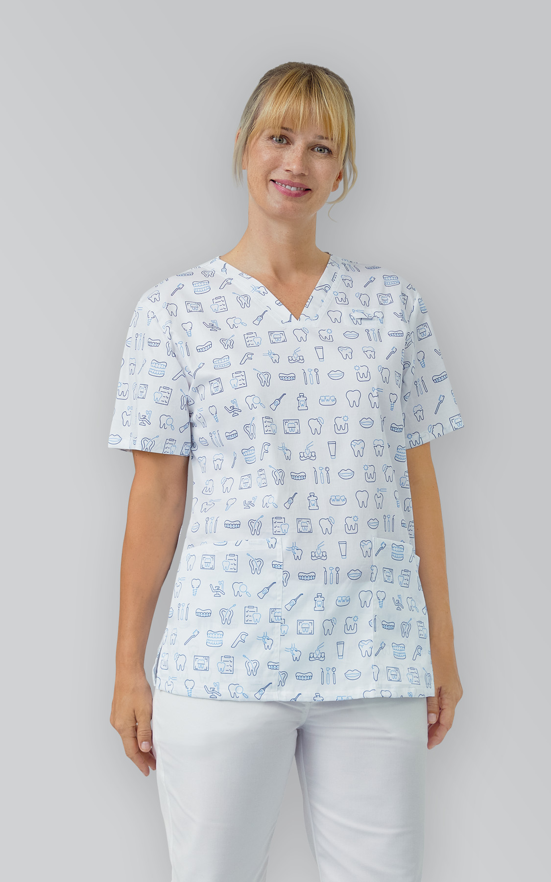 Vybírat můžete hned z několika originálních potisků, které odrážejí vaši profesi nebo osobnost – jemná louka, motiv veteriny nebo dental design v bílé nebo světle tyrkysové. Každý vzor najdete v naší nabídce jako samostatný produkt.