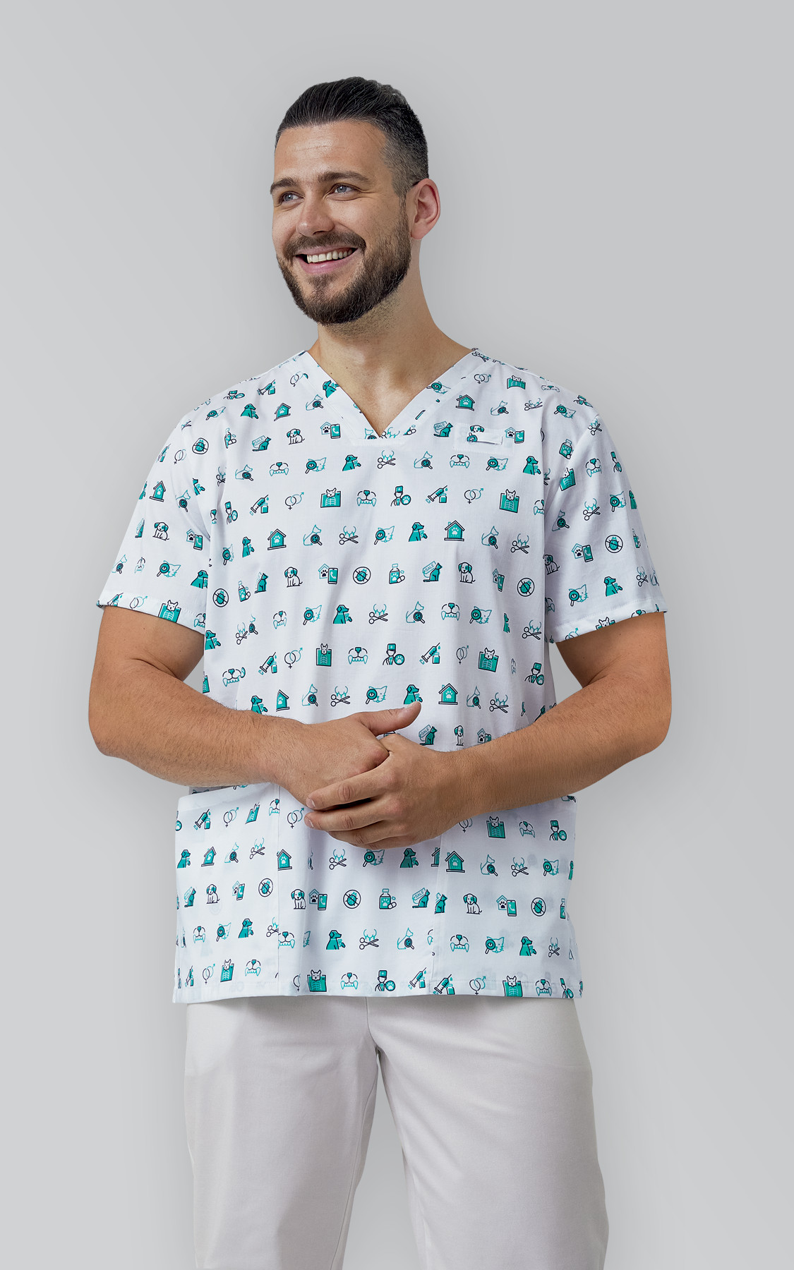 Vybírat můžete hned z několika originálních potisků, které odrážejí vaši profesi nebo osobnost – jemná louka, motiv veteriny nebo dental design v bílé nebo světle tyrkysové. Každý vzor najdete v naší nabídce jako samostatný produkt.